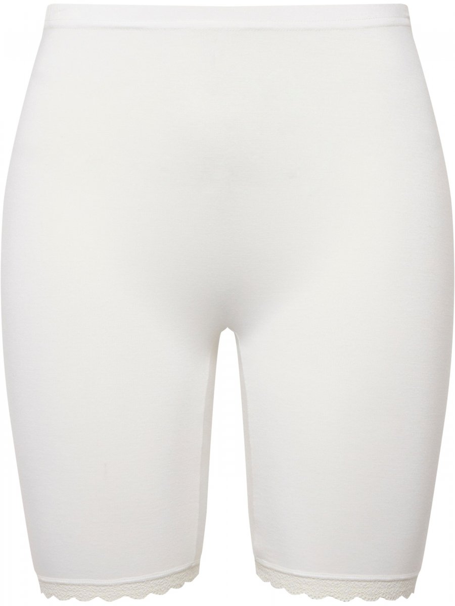 Ulla Popken Lace Hem Stretch Viscose Knit Bicycle Length Lounge Shorts White
