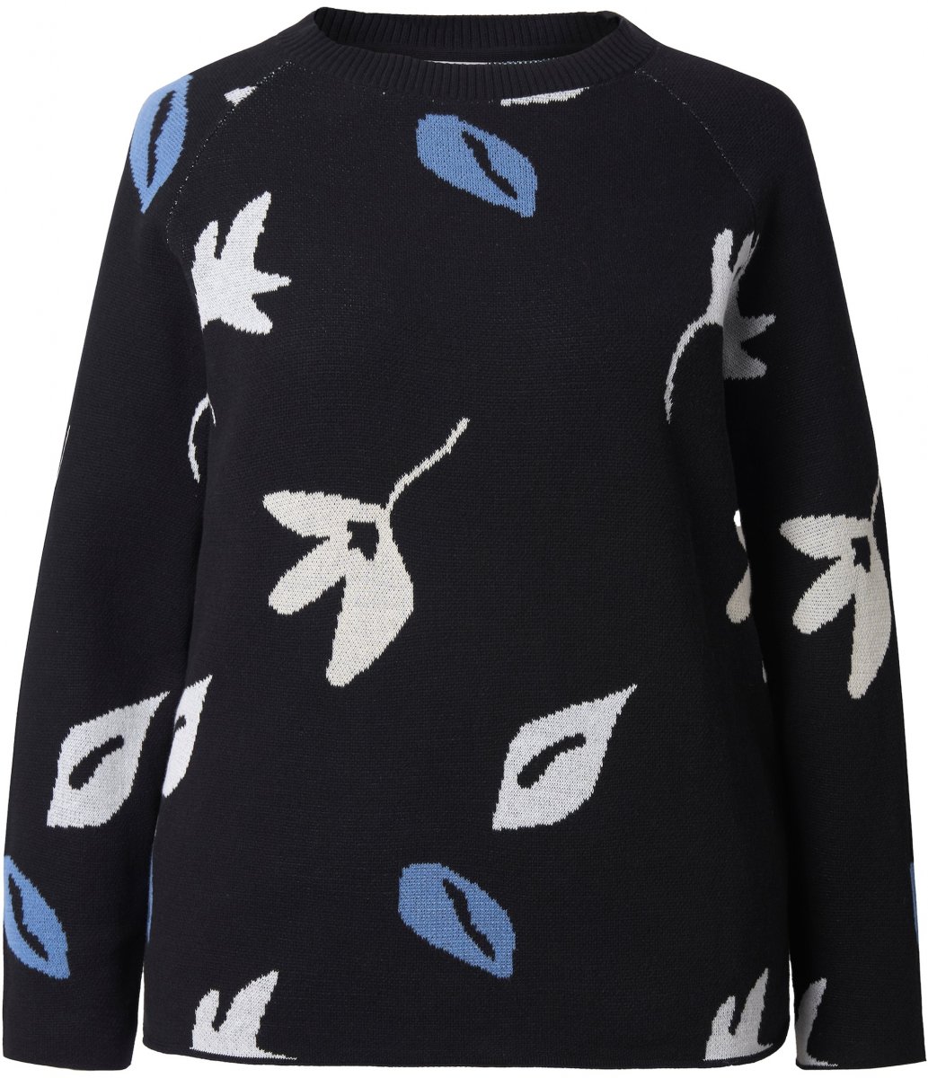 Sprievodcu veľkosťami - Ulla Popken Eco Cotton Leaf Pattern Long Sleeve Sweater Black