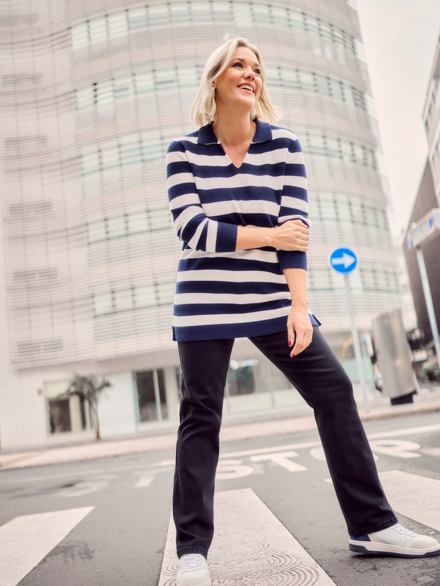 Sprievodcu veľkosťami - Ulla Popken Striped Polo Collar Long Sleeve Sweater Navy