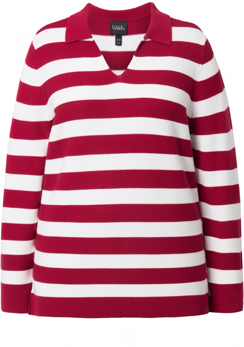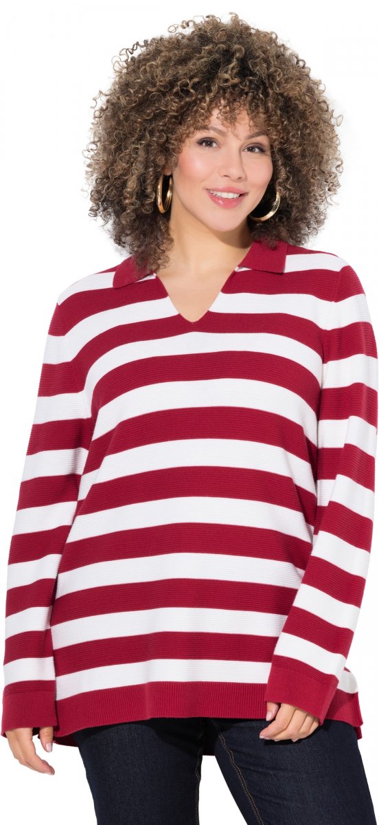Sprievodcu veľkosťami - Ulla Popken Striped Polo Collar Long Sleeve Sweater Ruby Red