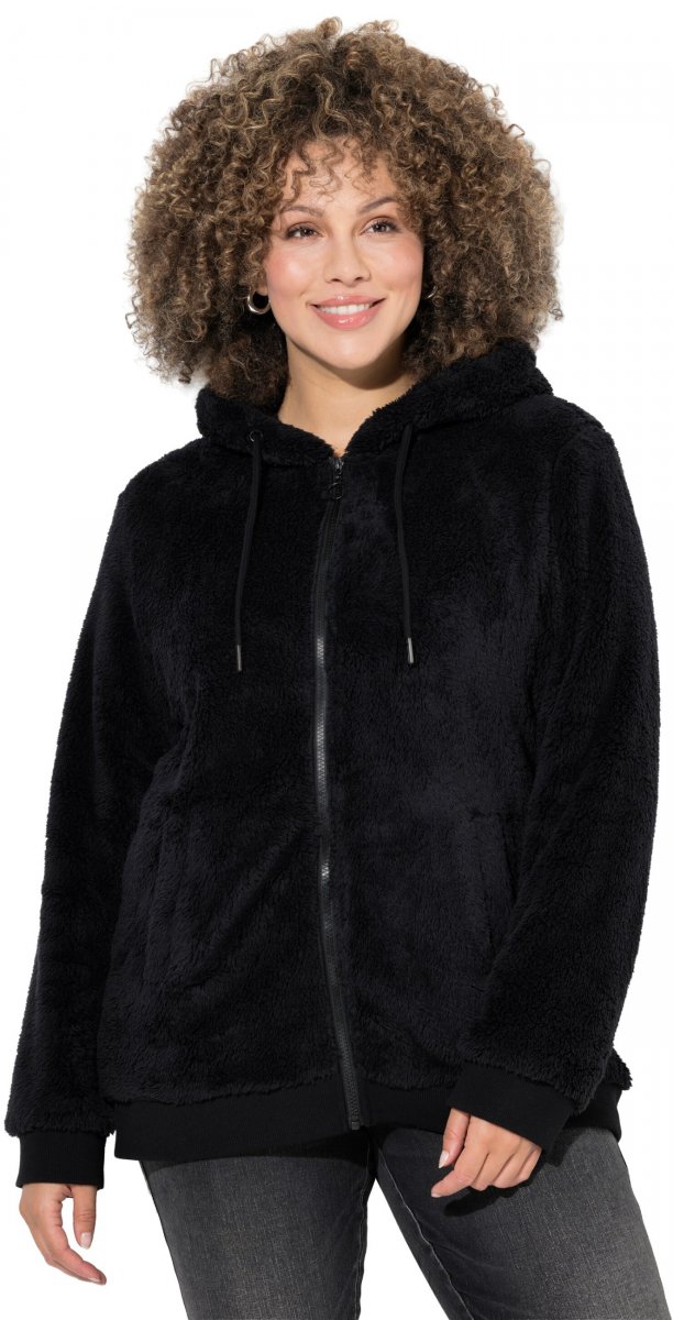 Sprievodcu veľkosťami - Ulla Popken Teddy Fleece Zip-Up Hoodie Black