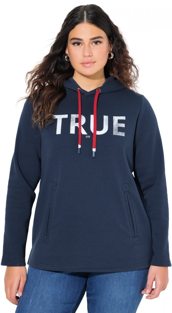 Sprievodcu veľkosťami - Ulla Popken TRUE Lettering Hoodie Navy Blue