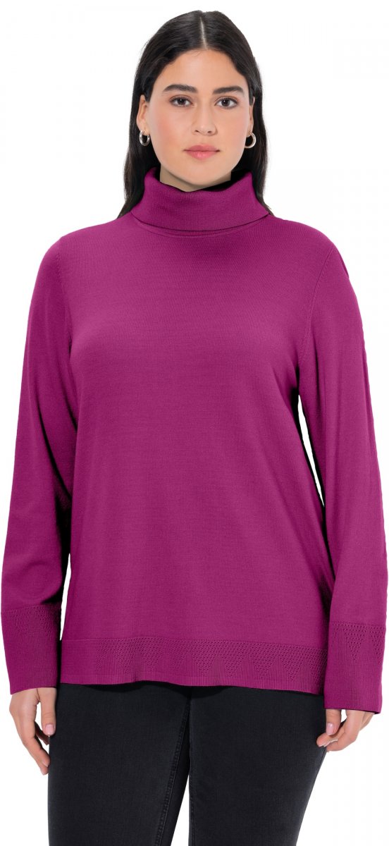 Sprievodcu veľkosťami - Ulla Popken Turtleneck Ribbed Trim Long Sleeve Sweater Berry