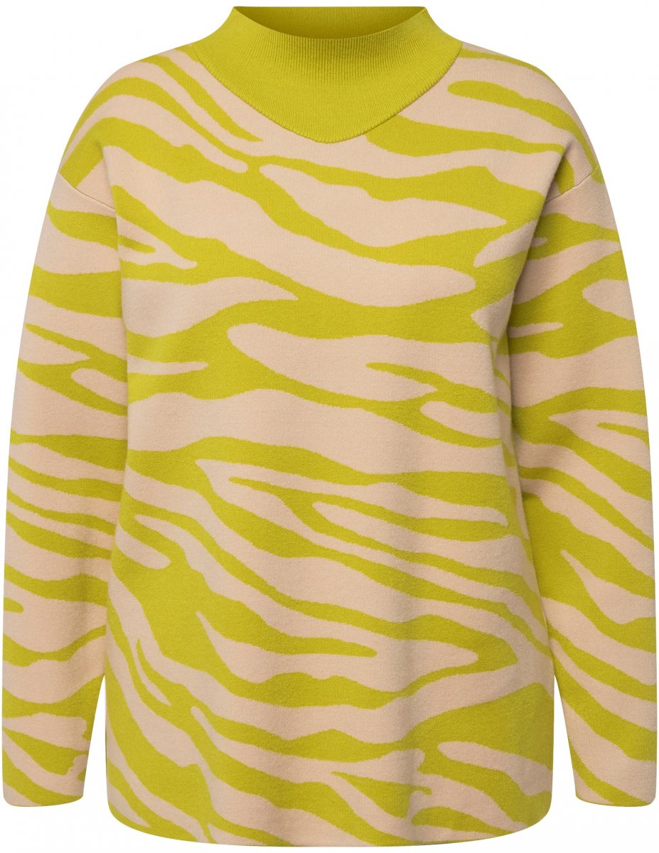 Ulla Popken Zebra Print Mock Turtleneck Long Sleeve Sweater Yellow Green