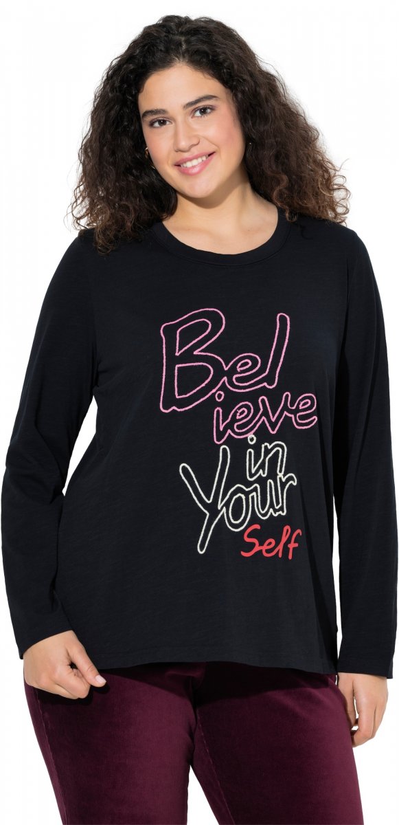 Sprievodcu veľkosťami - Ulla Popken Motivational Graphic Long Sleeve Tee Black