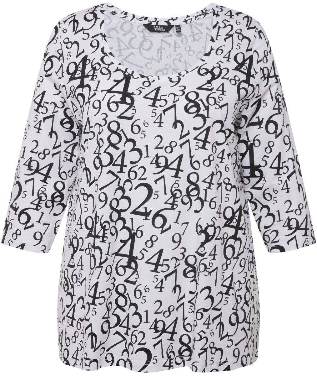 Sprievodcu veľkosťami - Ulla Popken Number Print 3/4 Sleeve Tee Snow White