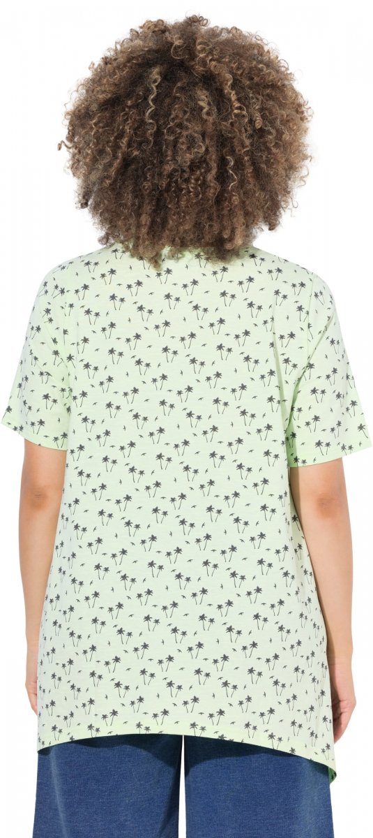 Sprievodcu veľkosťami - Ulla Popken Palm Tree Print Pointed Hem Tee Lett Lime