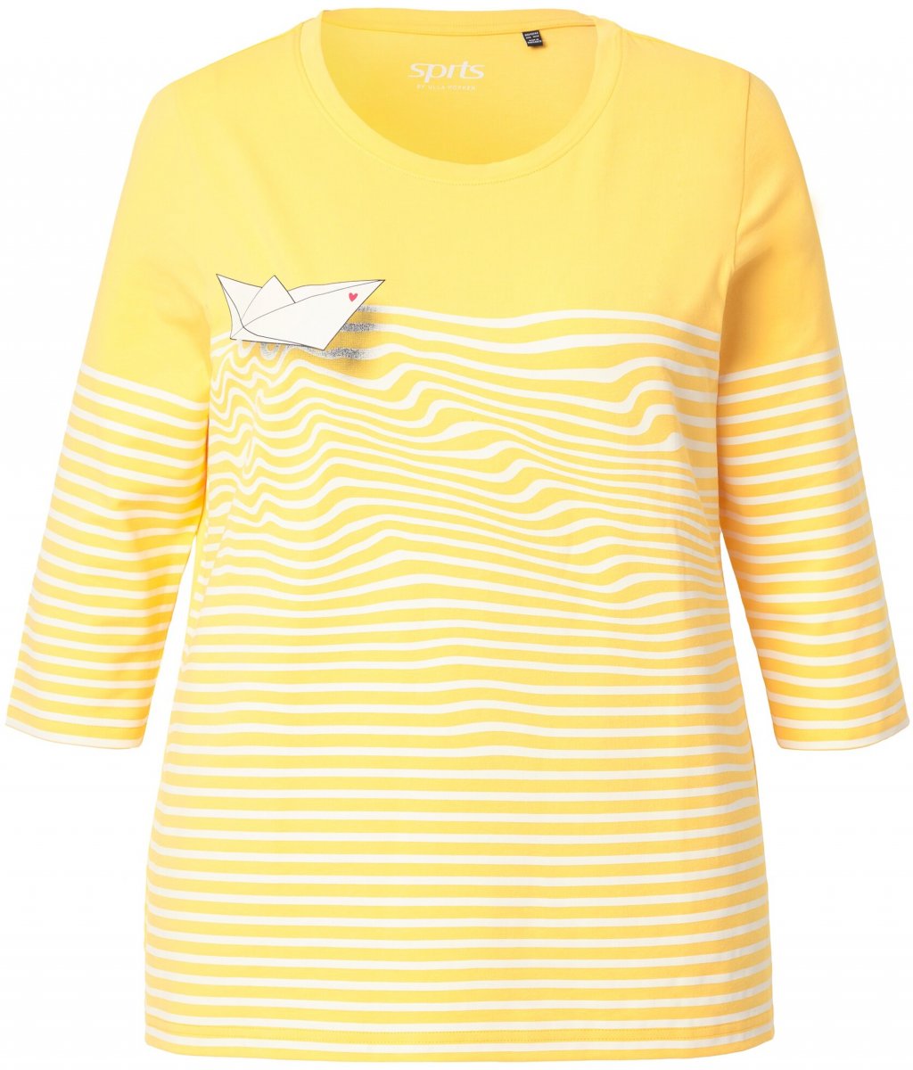 Sprievodcu veľkosťami - Ulla Popken Paper Boat Print 3/4 Sleeve Tee Sun Yellow