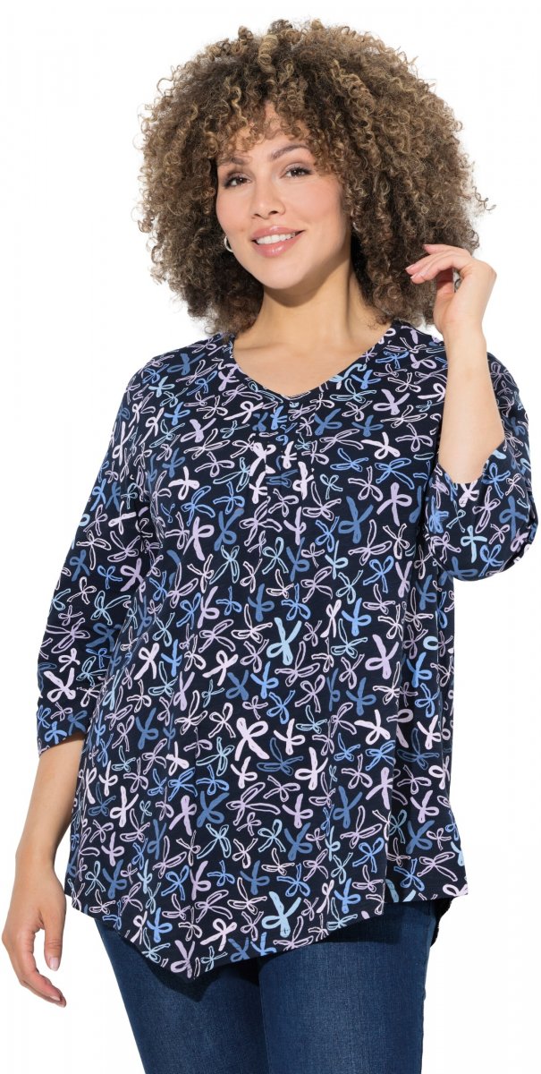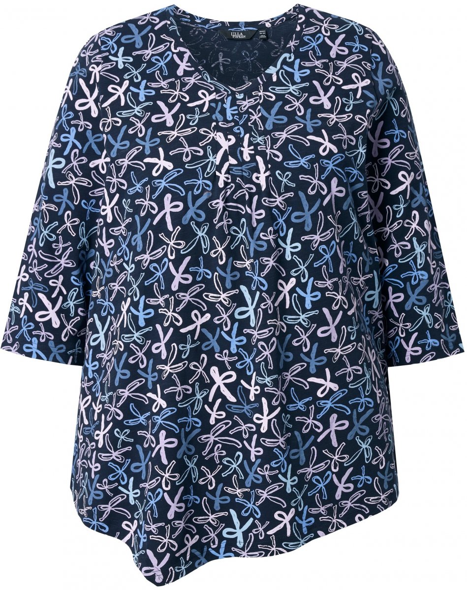 Sprievodcu veľkosťami - Ulla Popken Ribbon Print 3/4 Sleeve Asymmetric Tee Navy