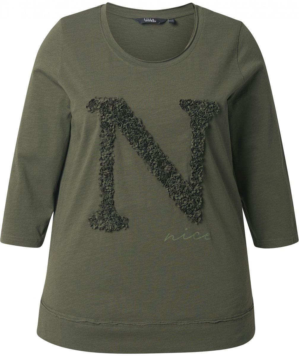Sprievodcu veľkosťami - Ulla Popken Textured Lettering 3/4 Sleeve Tee Olive