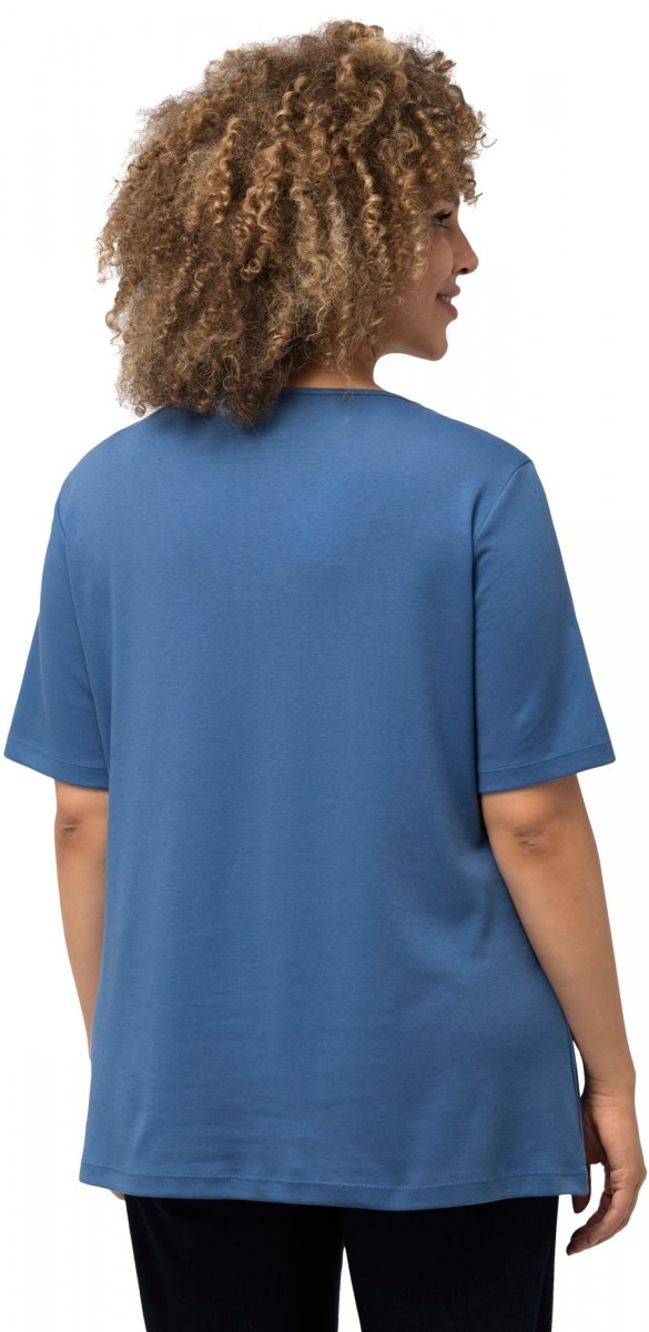 Ulla Popken Double Layer Rounded V-Neck Slim Fit Tee Denim Blue
