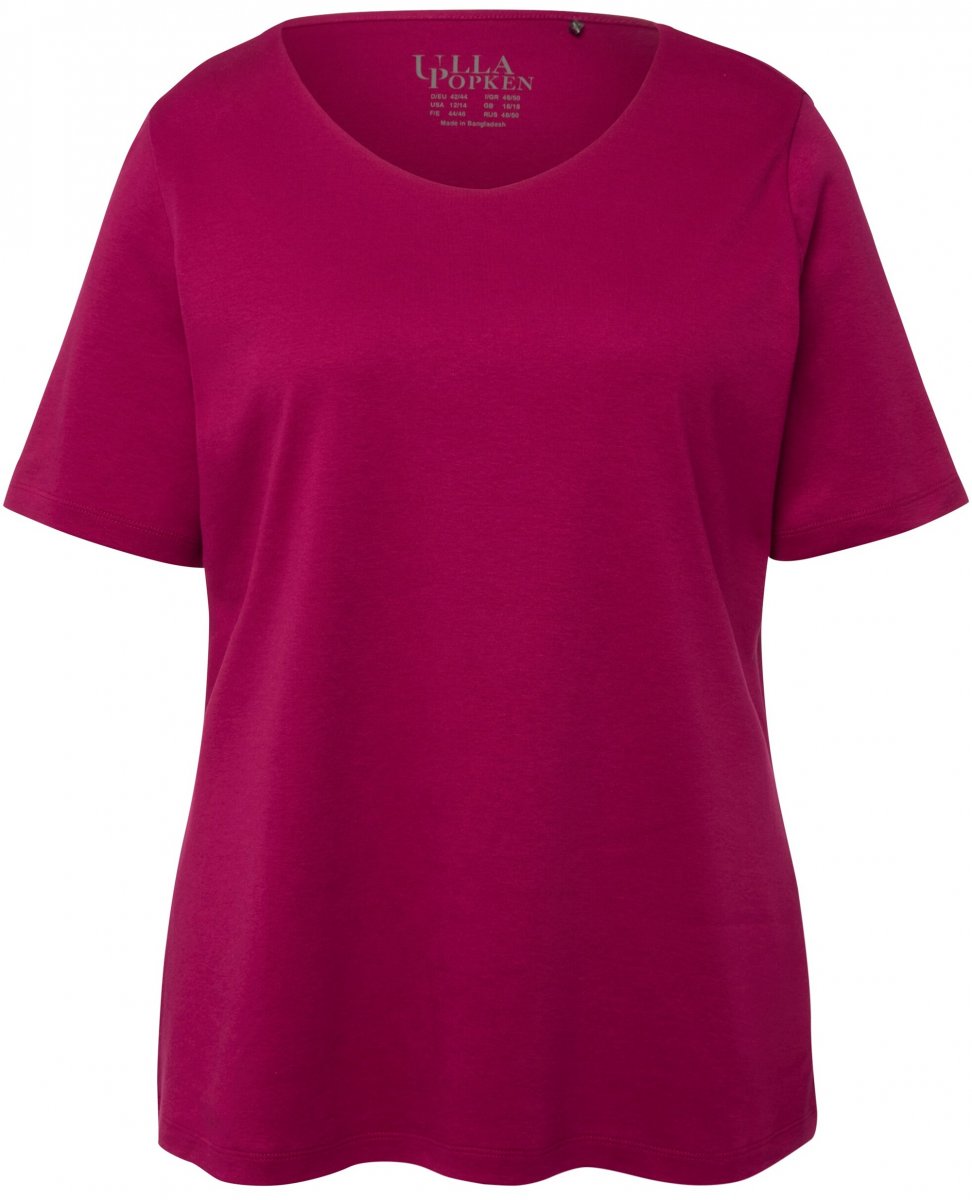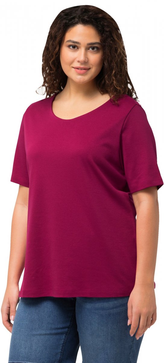 Ulla Popken Double Layer Rounded V-Neck Slim Fit Tee Magnolia Red