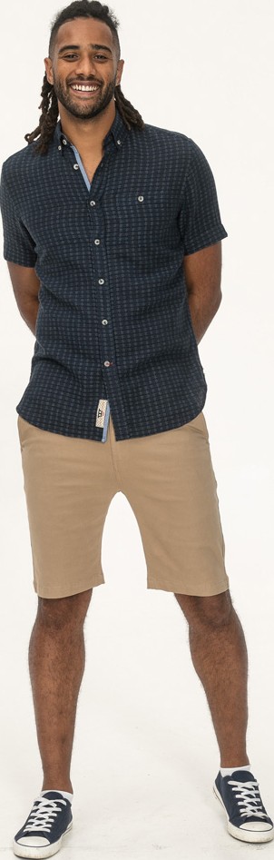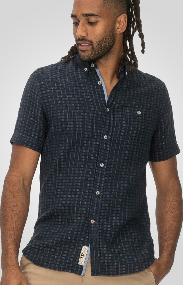 Sprievodcu veľkosťami - D555 Pontefract Jacquard Linen Mix Short Sleeve Shirt With Button Down Navy