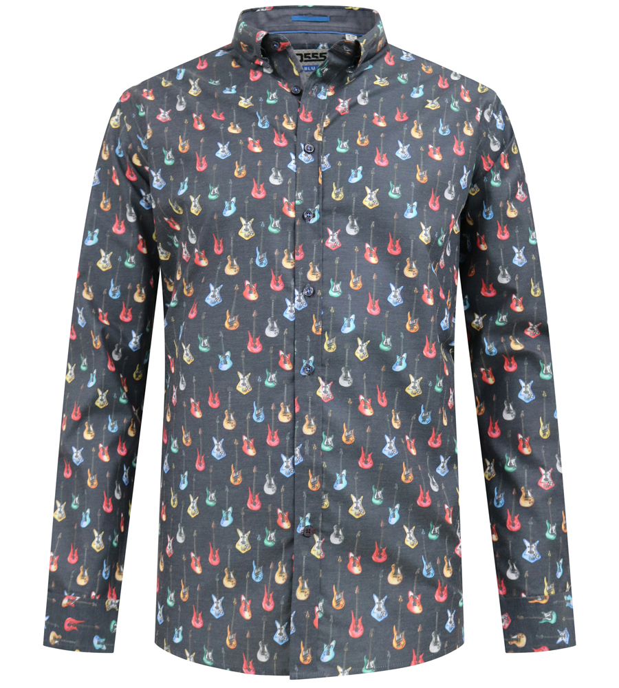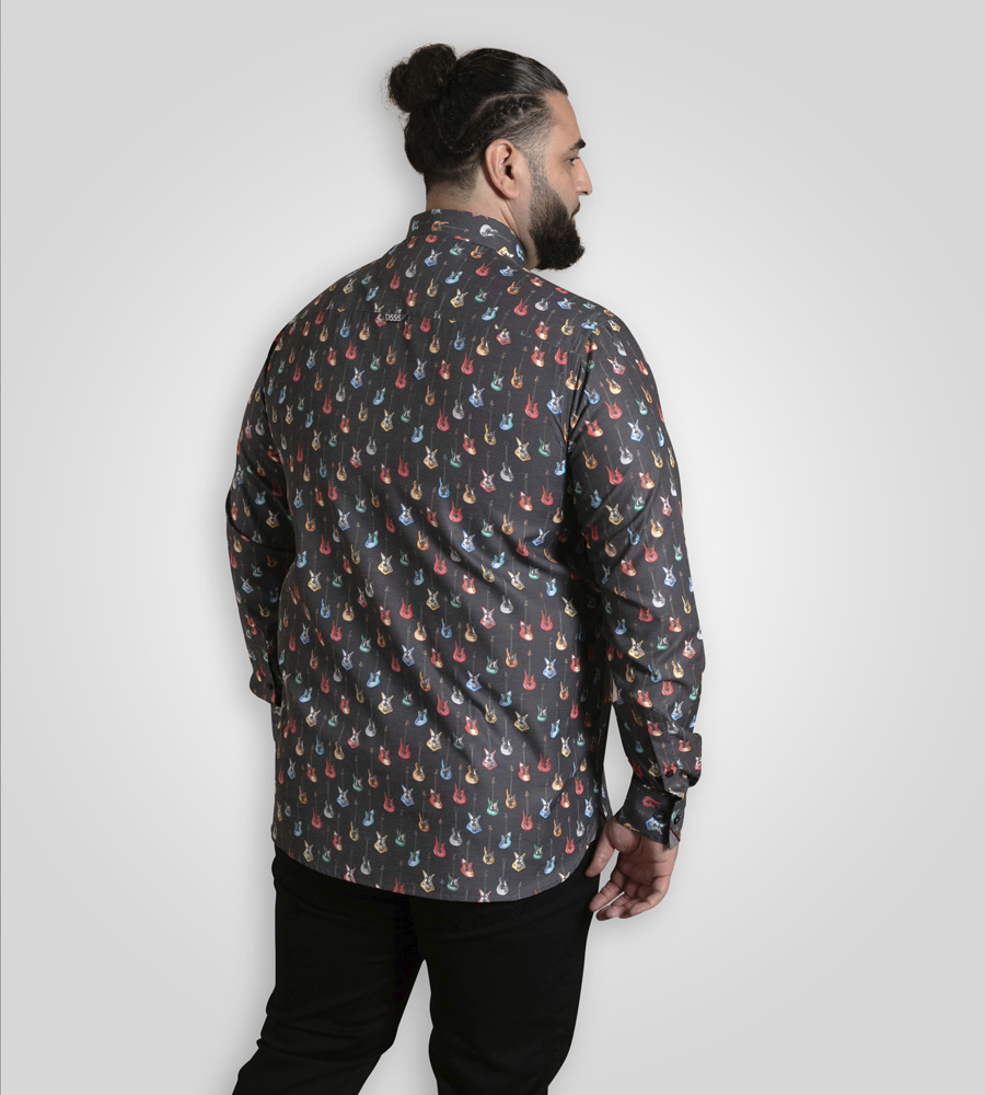 Sprievodcu veľkosťami - D555 Wakefield Long Sleeve AOP Guitar Printed Shirt Grey