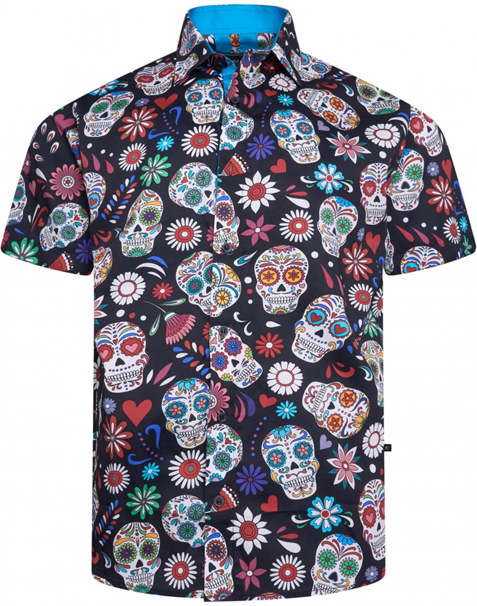 Sprievodcu veľkosťami - Kam Jeans 6069 Skull Print Short Sleeve Black
