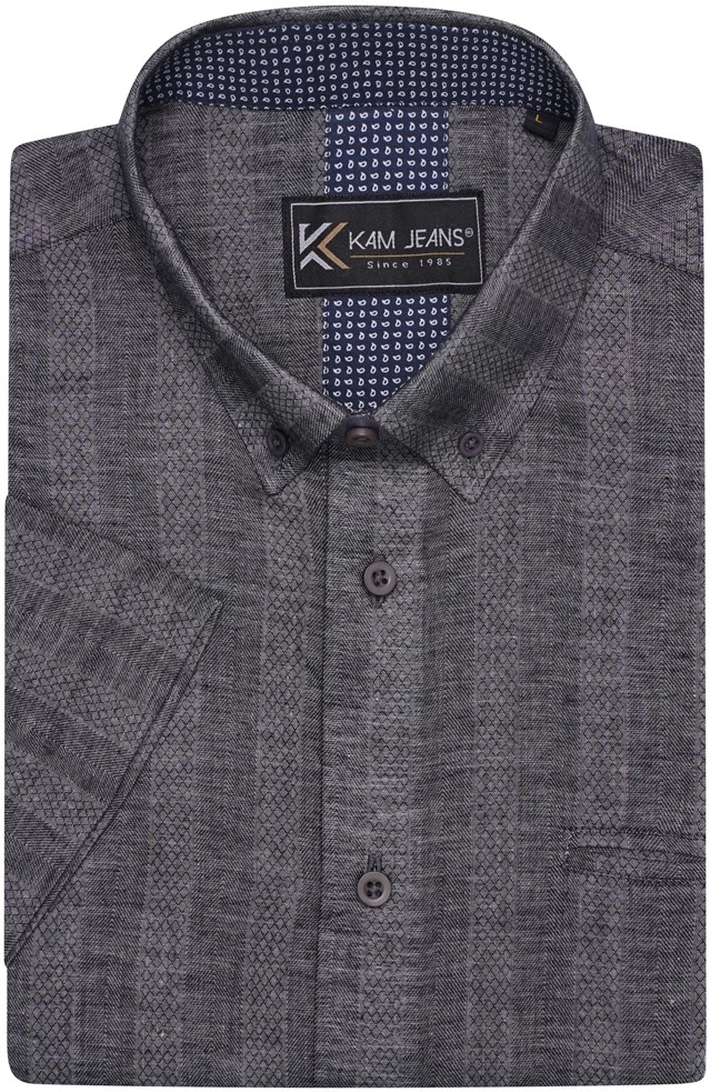 Sprievodcu veľkosťami - Kam Jeans 6323 Self Pattern Casual Short Sleeve Shirt Charcoal