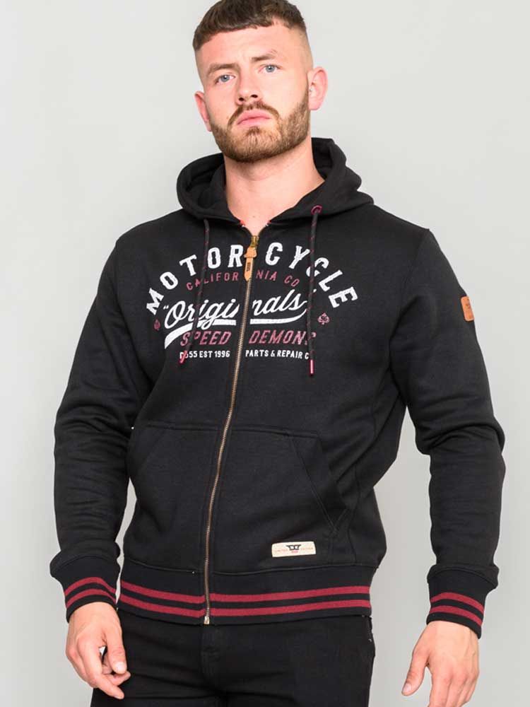 Sprievodcu veľkosťami - D555 Patrick Full Zip Hoody With 'Motorcycle' Chest Print
