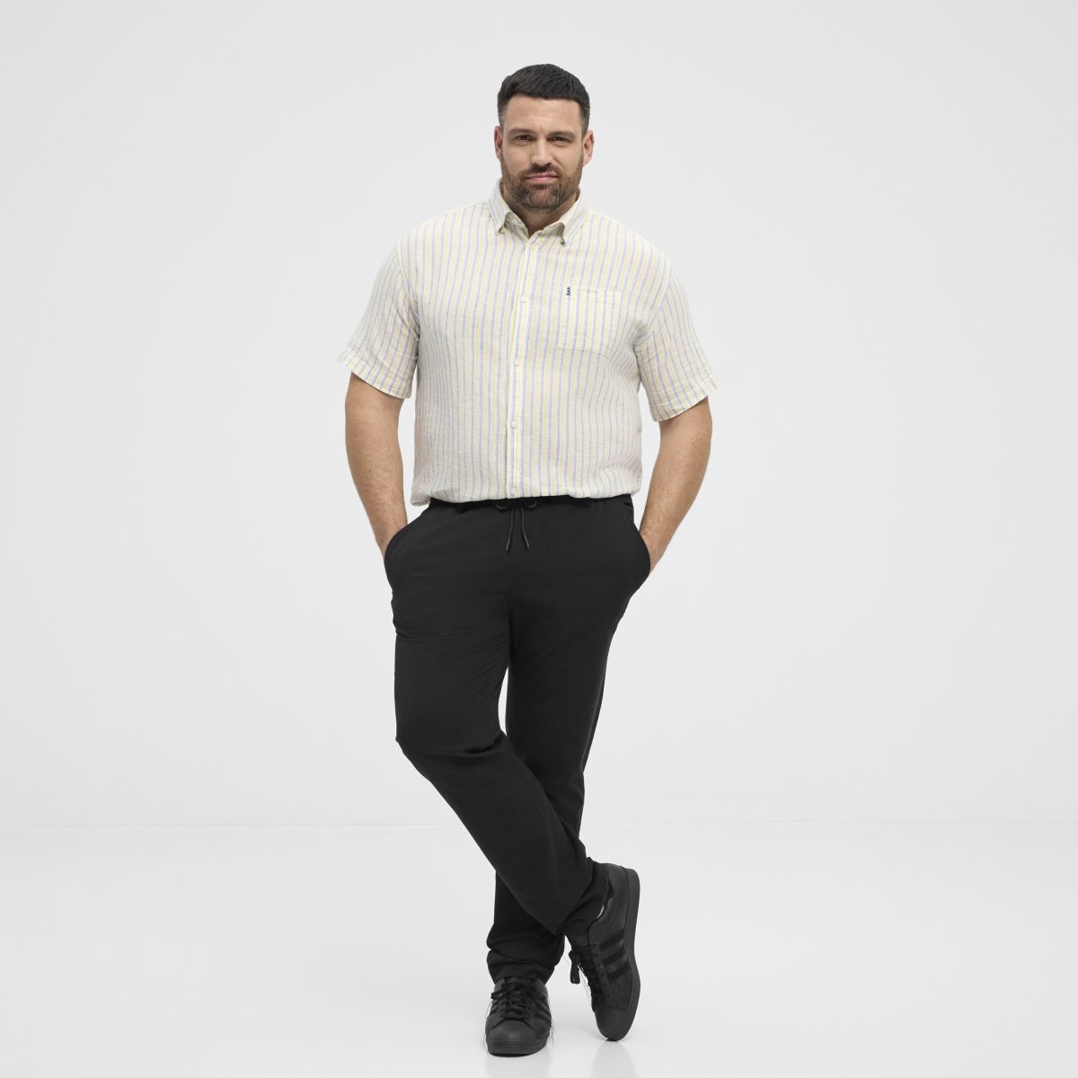 Nadrozmerné nohaviceKúpite produkt u nás vo veľkostiach 2XL-8XLOd značky North LatitudeVyrobené z 54 % ľanu, 44 % viskózy a 2 % elastanuFarba je čiernaPranie v práčke na 30°Sezónny produkt - veľkosti nie sú na skladeKliknutím sem zobrazíte sprievodcu veľkosťami