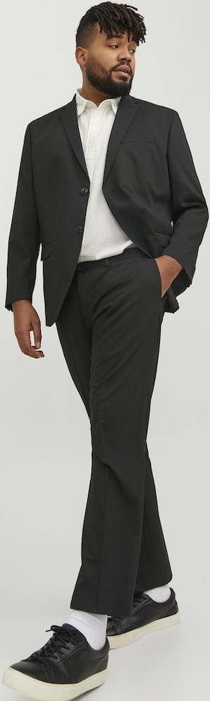 Nadrozmerné oblekové nohaviceU nás dostupné vo veľkostiach 60-72Jack & JonesVyrobené zo 78% polyesteru, 17% viskózy, 5% elastanuFarba je čiernaCeloročne - ak Vaša veľkosť nie je skladom, objednávame Vám ju od nášho dodávateľa.Kliknutím sem zobrazíte sprievodcu veľkosťami