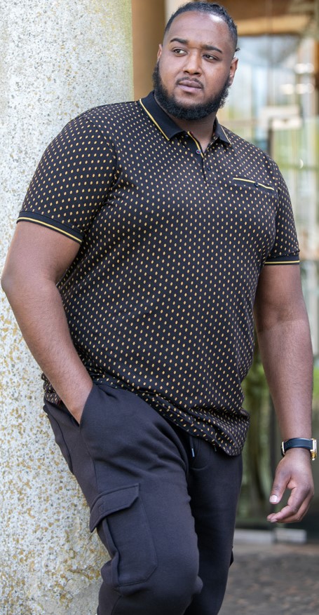 Sprievodcu veľkosťami - D555 RAUL AOP Jersey Polo With Jacquard Collar, Ribs And Chest Pocket Black