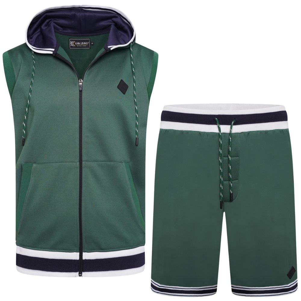 Sprievodcu veľkosťami - Kam Jeans TS005 Retro Tracky Set (Shorts/Sleeveless Hoodie) Racing Green